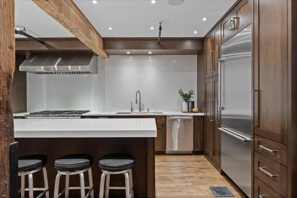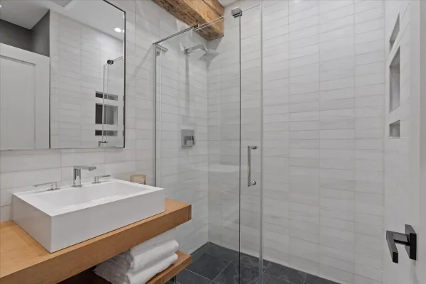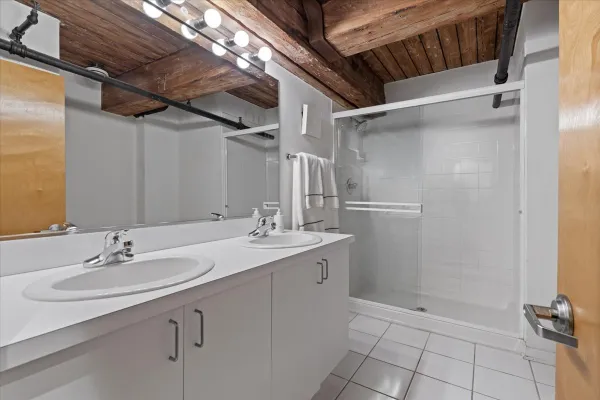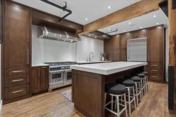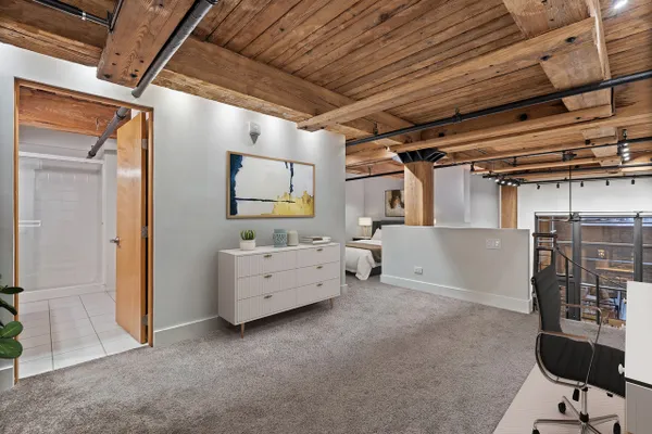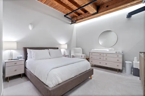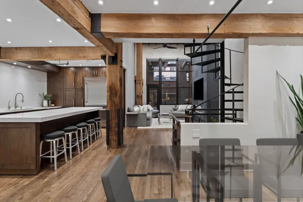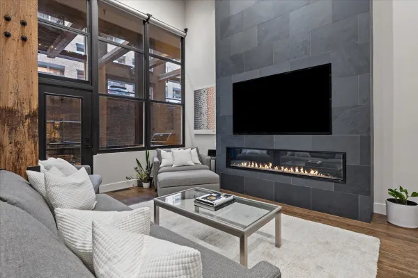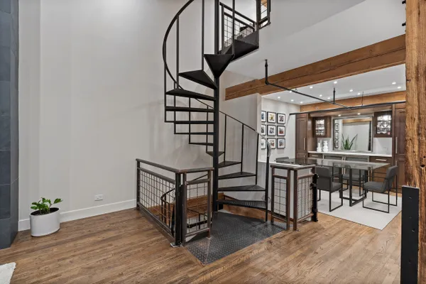Welcome home to this expansive 2,300-square-foot 2 bed, 3 bath residence in the heart of the West Loop. Thoughtfully designed for modern living and entertaining, this home offers multiple indoor and outdoor living spaces, including a private deck, a private lower-level patio, and access to a stunning south-facing shared atrium. The main living level features refinished floors, a sleek slate electric fireplace, and remote-controlled electric blinds. The fully renovated kitchen (2021), showcases a quartz waterfall island and matching backsplash, premium Thermador appliances, and an oversized hood. The former third bedroom has been opened to create a spacious dining area ideal for hosting. A remodeled full bathroom rounds out the main level. The lower level provides exceptional additional living space with new carpeting, a fully remodeled bathroom featuring hardwood walnut cabinetry and slate floors, an additional bedroom and a great flex storage space. This level is perfect for a media room, home office, or guest suite, with direct access to the private patio. The top level is a true primary suite featuring the primary bedroom and bathroom, and open space perfect for an office or seating area. Two parking spaces are available for an additional cost. Ideally located near Randolph Street and surrounded by West Loop's renowned dining, shopping, and nightlife, with easy access to everything the neighborhood has to offer. Situated within the Skinner Elementary School district and near Wells Community Academy High School. Two parking spots for an extra $55,000